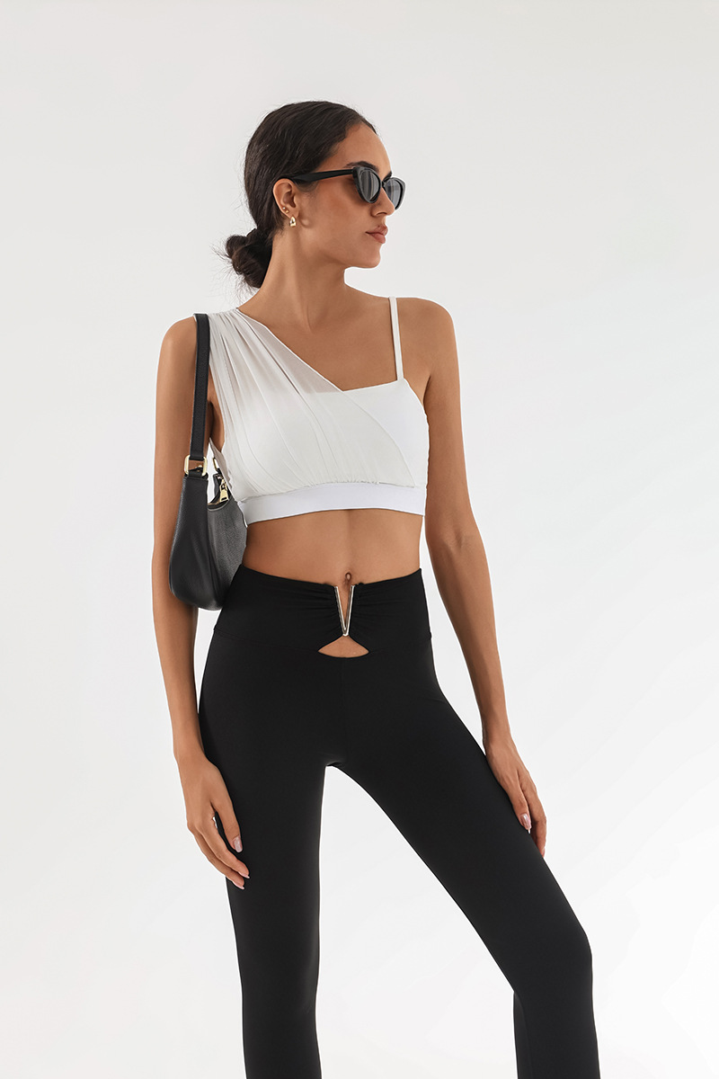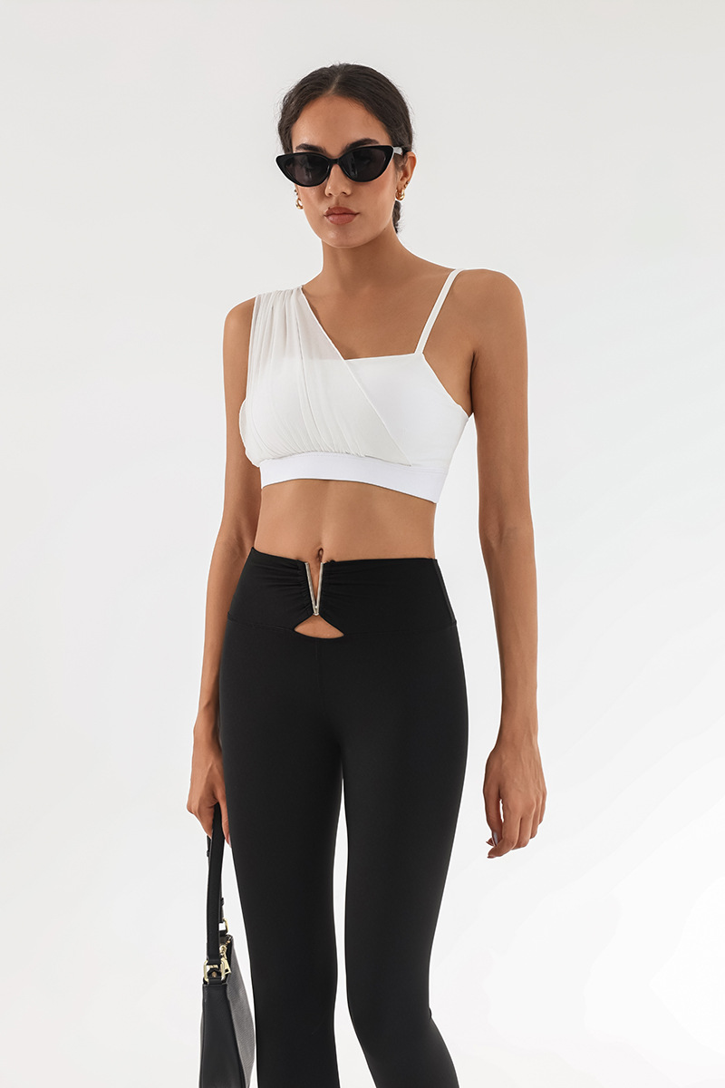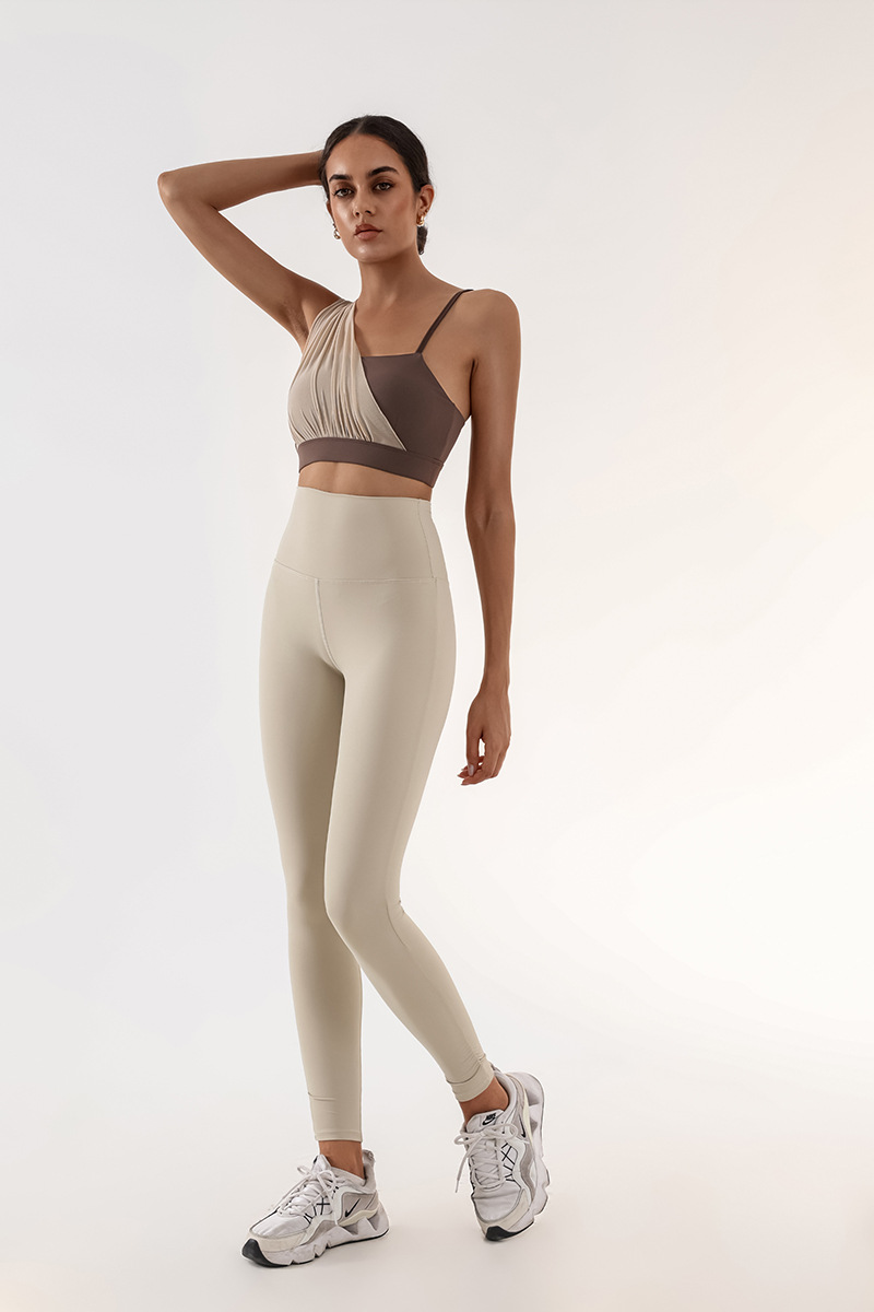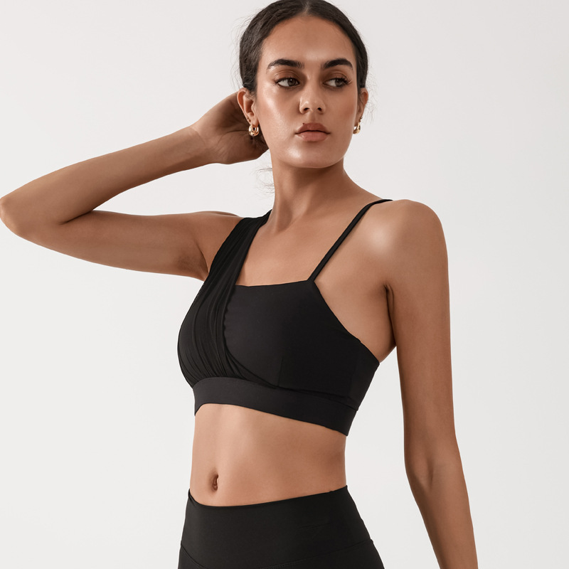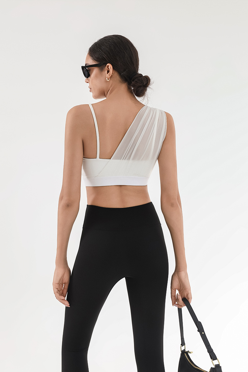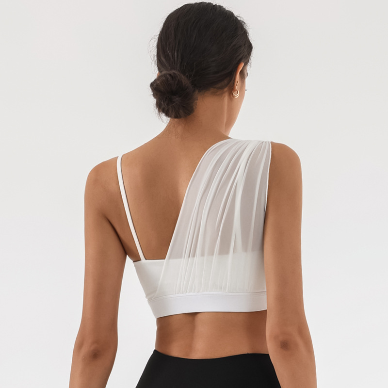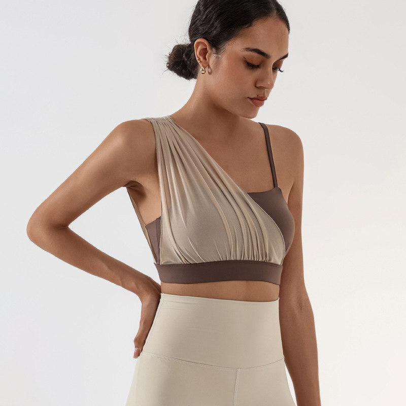 With Chest Pad Yoga Fitness Training Mesh Stitching Contrast Color High Elastic Quick-drying Nude Feel Bra